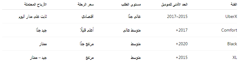 ما هي الفئات المتاحة في أوبر السعودية؟